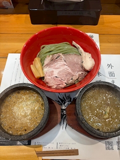 この前食べたラーメンが こいちゃん好みでとても美味しかった 実家の方に行く用事があったのでそこで 食べた こいちゃんはつけ麺で 友達は海老ラーメン食べてた つけ麺は海老と雲丹のつけ汁があって どっちも甲乙つけ難いぐらい美味しかった めっちゃ濃厚でどちらも味がはっきりと感じて とっても美味 万人受けなのは海老だなぁって感じだけど 雲丹はなんだか癖になるような味 最後つけ汁を和風スープで割れるんだけど 無限に飲めそうだった (お腹がいっぱいでない限り) ちなみに麺は海苔が混ざってるみたいで 素のままで食べたり薬味をつけて食べたりできて 面にもこだわりを感じた…!