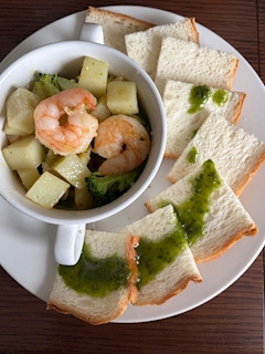 カヲル アヒージョだとオイル多すぎてウォってなるからオリーブオイル少なめのアヒージョ風にした🤩🤩 パンにジェノベーゼソースかけるまではオシャレだった🤩🤩かけ方にセンスなかった!! でも美味🤩🤩🤩🤩🤩